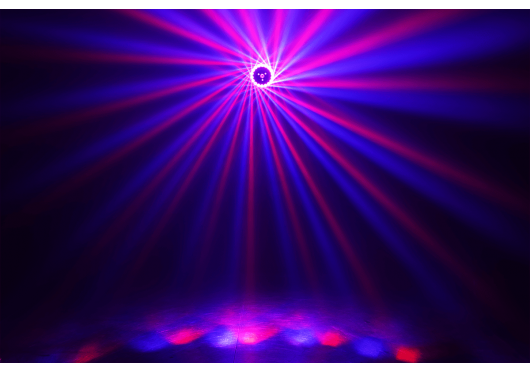 - Effet soleil : 18 x LED 3W RGB avec prisme rotatif