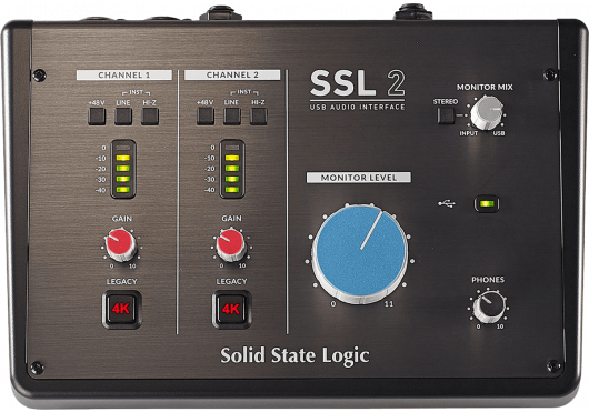 - 2 préamplis micro/ligne/instrument SSL : performances inégalées, avec une plage de gain colossale pour un appareil alimenté via USB : 62 dB de gain, 110,5 dB de plage dynamique