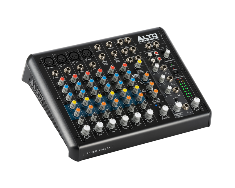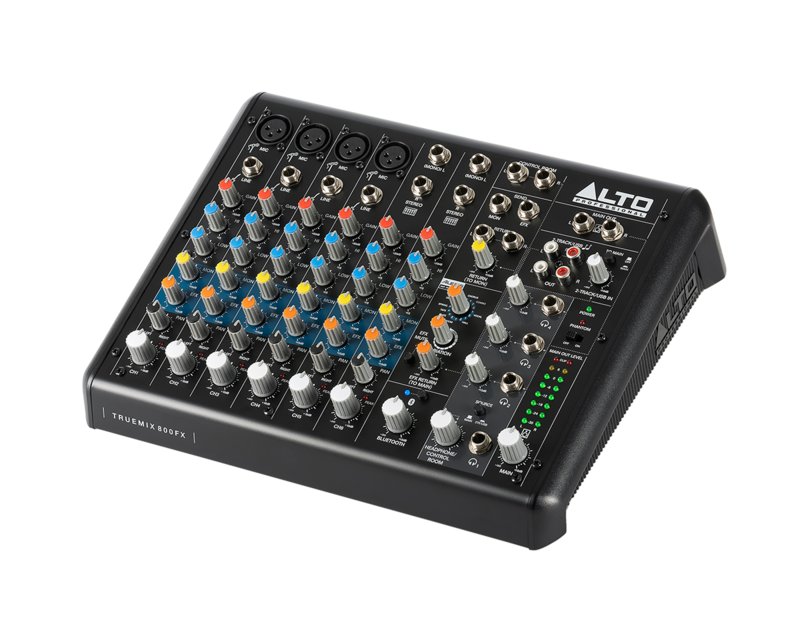 La TrueMix 800 FX d'Alto Professional est une table de mixage compacte et très complète. Avec ses huit canaux basés sur quatre voies micro et deux voies stéréo, associés à une entrée Bluetooth, une interface USB pour l'enregistrement ou la lecture et un module d'effets signé Alesis, la TrueMix 800 FX est parfaite pour les projets d'enregistrement domestique, les livestreamers ou podcasters comme pour les groupes.