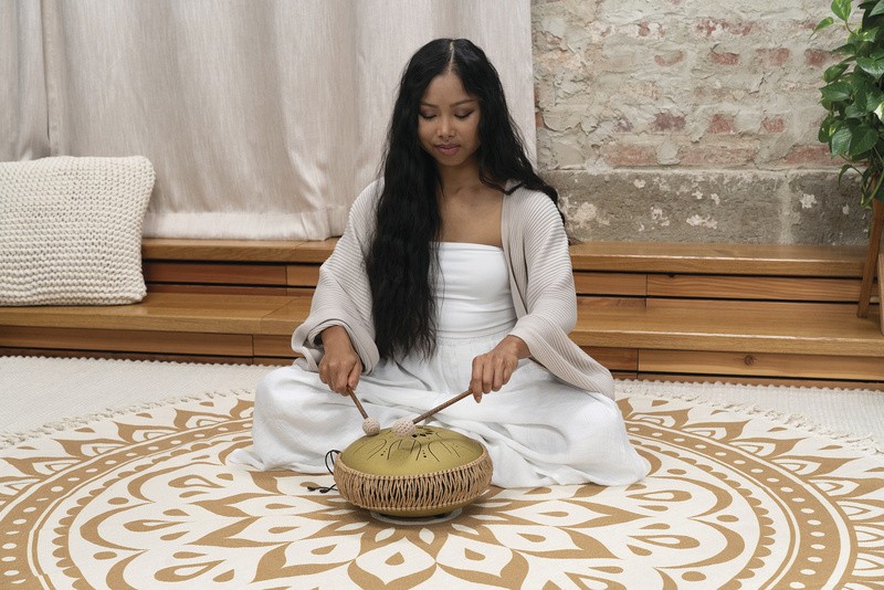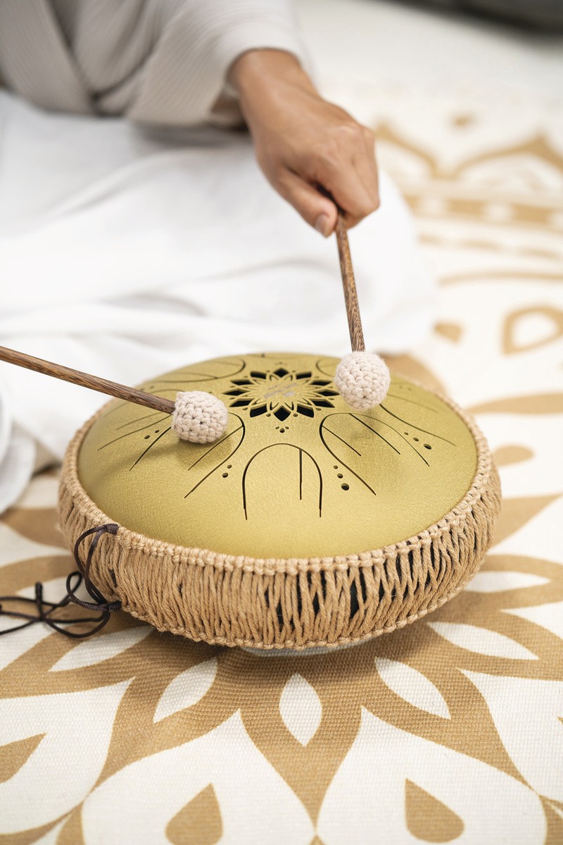 Le Tongue Drum en acier Meinl Sonic Energy 10" Medium Octave est fabriquée en acier inoxydable de haute qualité. Ses huit notes sont réparties sur deux octaves. Permettant d'obtenir un son merveilleux et méditatif, rappelant celui du handpan. Un event situé sur la face inférieur peut être bouché à l'aide d'un bouchon en silicone afin d'obtenir un son encore plus compact/étouffé. Trois pieds en silicone situés à la base l'empêchent de glisser. Le Tongue Drum est un instrument pouvant être jouée avec les doigts ou avec des mailloches. Pour commencer à jouer, il suffit de le poser sur une surface plane ou sur vos genoux. Livrée avec deux mailloches en bois avec têtes caoutchouc enveloppées de tissu tressé et d’une housse de transport avec une fermeture éclair et une poignée